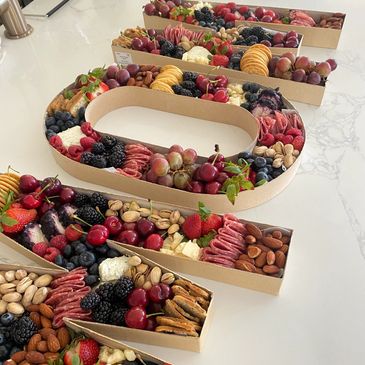 These letters are perfect for A Special Party ,Graduation, or any Name being spelled out! These letter come with 4 cheese, 2 meats, assorted nuts, Assorted Berries, Grapes, and Sweet Dried Mandarins!